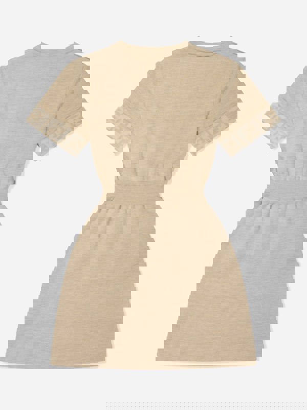 Fendi girls’ knitted dress with a reversible design and FF logo patterning. One side has an all-over FF motif, while the reverse comes in a beige shade. A ribbed waist creates a cinched shape, with ribbed trims to finish.