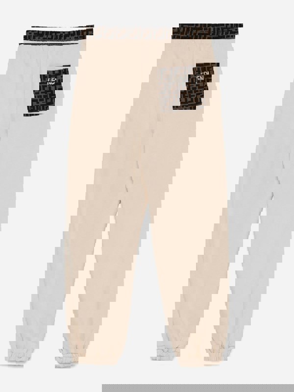 These Fendi Kids joggers combine a utilitarian look with a signature FF monogram design. The unisex style comes in beige and includes elasticated details for a clean, practical finish. A back pocket adds a simple, functional detail, while the Made in Italy construction reflects the label’s Italian production.