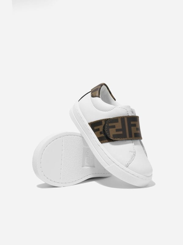 These Fendi Kids trainers in white keep the look clean and classic. Made in Italy, they use a leather construction with a Fendi logo detail for a recognisable finish. The white colourway stays simple and understated.