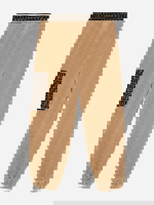 Fendi Kids teddy joggers in beige, made in Italy. The unisex design suits both boys and girls and forms part of the AW2024 collection. A soft fabric construction keeps the look simple and comfortable for everyday wear.