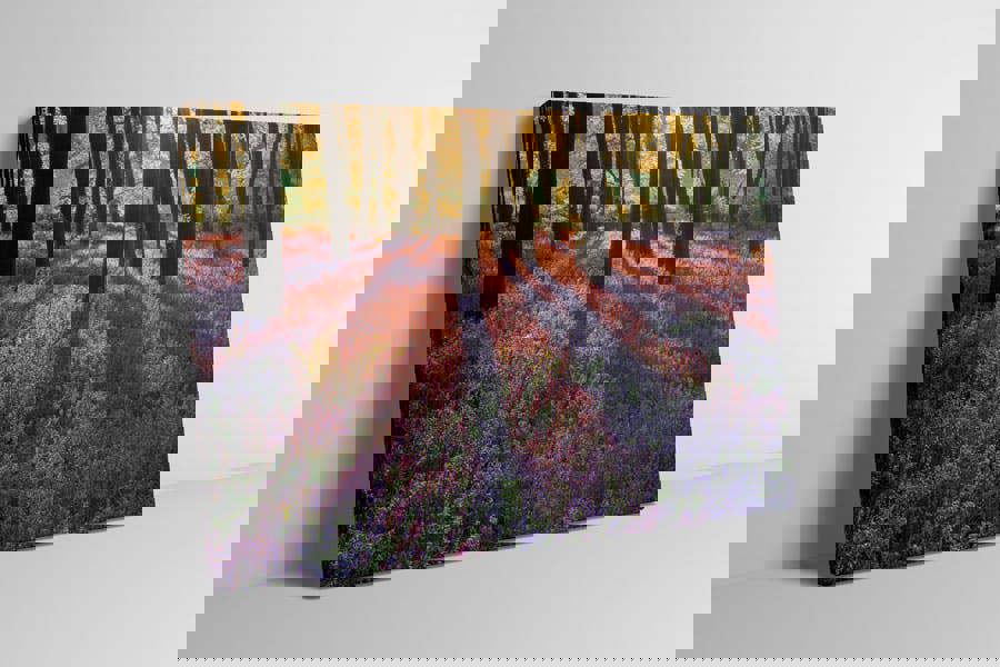 The mix of warm sunlight and cool bluebells suits restful bedrooms, airy living rooms and welcoming hallway galleries. Woodland walkers, nature lovers and collectors of British landscape photography will enjoy the sense of depth and the first-light glow that opens up smaller rooms. Doug has more bluebell art available on his portfolio page.