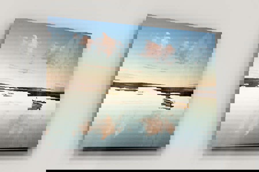 Ideal artwork for chilled bedrooms, dining rooms, contemplative studios or nature-inspired lounges, the photograph's gentle blues and warm neutrals sit easily beside wooden floors, linen upholstery and modern coastal interiors – inviting a deep, unhurried breath each time you pass.