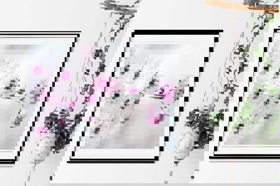 Your floral wall art is made to order by experienced print partners. Opt for a fine-art framed print with inner white mount, a glossy acrylic panel that intensifies colour, or a hand-stretched canvas print for subtle texture. Multiple sizes are available; for a show-stopping statement simply contact us for a larger blossom wall print.