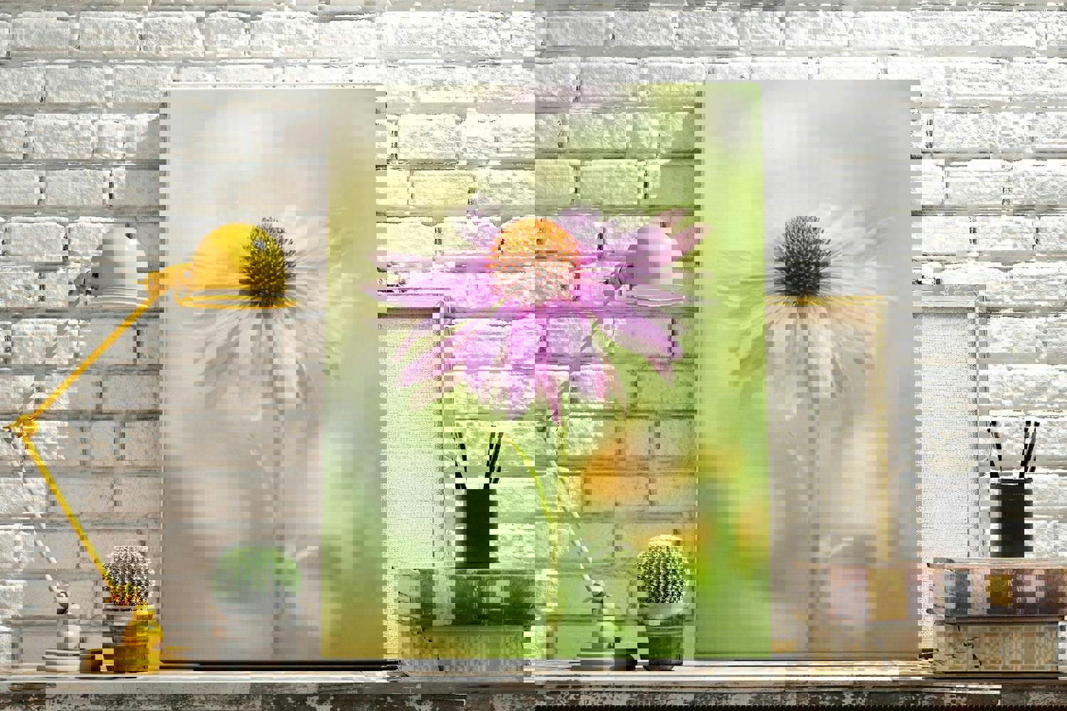 Keep your Coneflower art print away from prolonged direct sunlight, high moisture and strong heat; dust lightly with a soft, dry cloth.