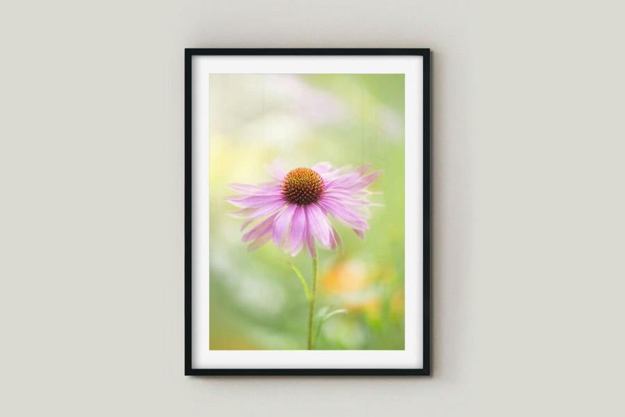 Coneflower is available to purchase as a traditional yet elegant framed art print, a beautiful textured canvas print, or a glossy acrylic photo print that enhances every subtle hue and fine detail. Offered in a range of sizes to suit your wall – contact us for a bespoke botanical wall print size.
