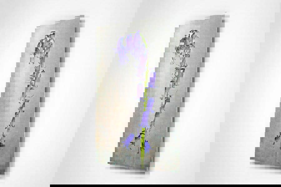 Celebrate the delicate beauty of one of Britain’s most iconic wildflowers with this elegant botanical wall art print titled English Bluebell. Captured in stunning detail against a soft textured backdrop, this close-up floral image highlights the graceful arch and intricate form of the bluebell’s violet-hued blooms. The minimalist background and painterly tones give the piece an artistic, vintage quality, perfect for adding a sense of quiet refinement to any interior.
