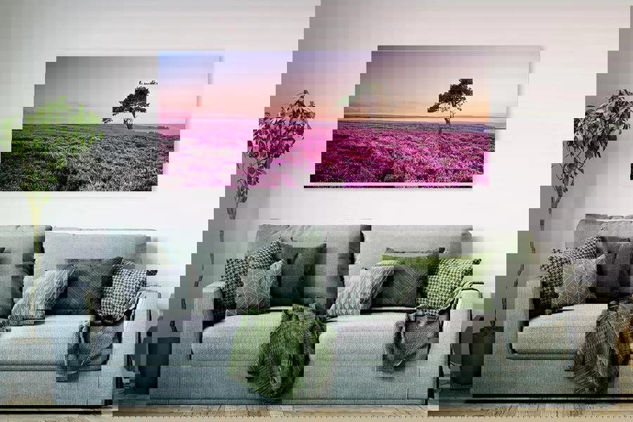 A Breathtaking Landscape Print of Heather Fields at Sunset
