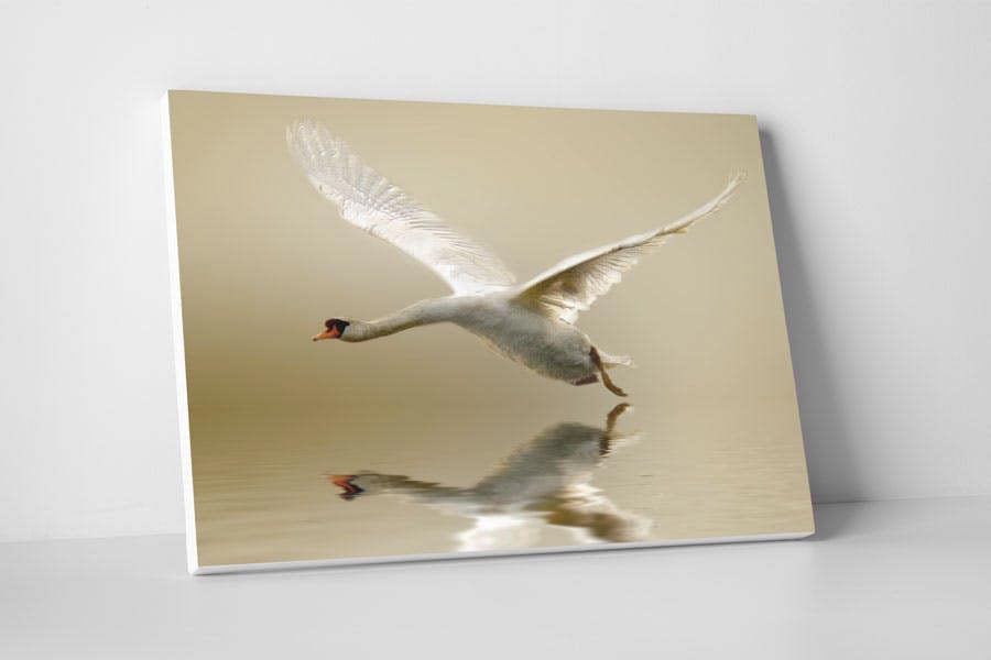 Transform your home with the grace and elegance of "In Flight. " This breathtaking art print captures the majestic moment of a swan soaring effortlessly over tranquil waters. The soft, golden tones and the serene reflection in the water create a calming and sophisticated atmosphere, making it a perfect addition to any room in your home.