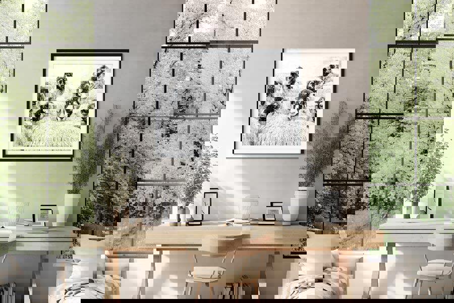 To preserve the warmth and clarity of your sheep print, hang it away from direct sunlight, moisture, and heat. Clean gently using a soft, dry cloth.