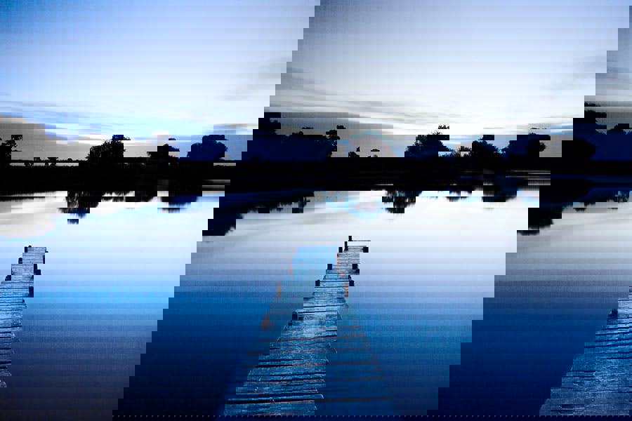 Immerse yourself in the stillness of early morning with this captivating fine art print, featuring a wooden jetty stretching into calm, glass-like waters. Captured in Gainsborough, Lincolnshire, just as the first light of dawn begins to paint the sky, this long-exposure photograph enhances the tranquil atmosphere with its deep blue tones and smooth reflections. The symmetry of the composition and the soothing colour palette create a sense of balance and serenity, making it a perfect piece for spaces designed to inspire relaxation and contemplation.