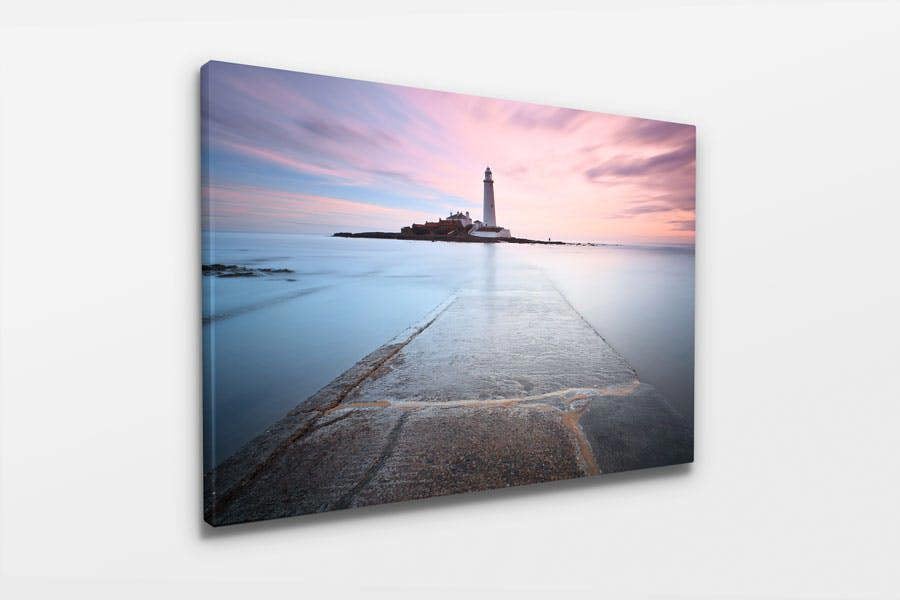 Transform your home with the serene beauty of "Path to St Mary's Lighthouse. " This breathtaking photographic art captures the tranquil scene of St Mary's Lighthouse at dawn, with the calm sea and pastel sky creating a sense of peace and wonder. The composition leads your eye along the path to the iconic lighthouse, inviting you to explore and admire the natural beauty of the Northumberland coastline.