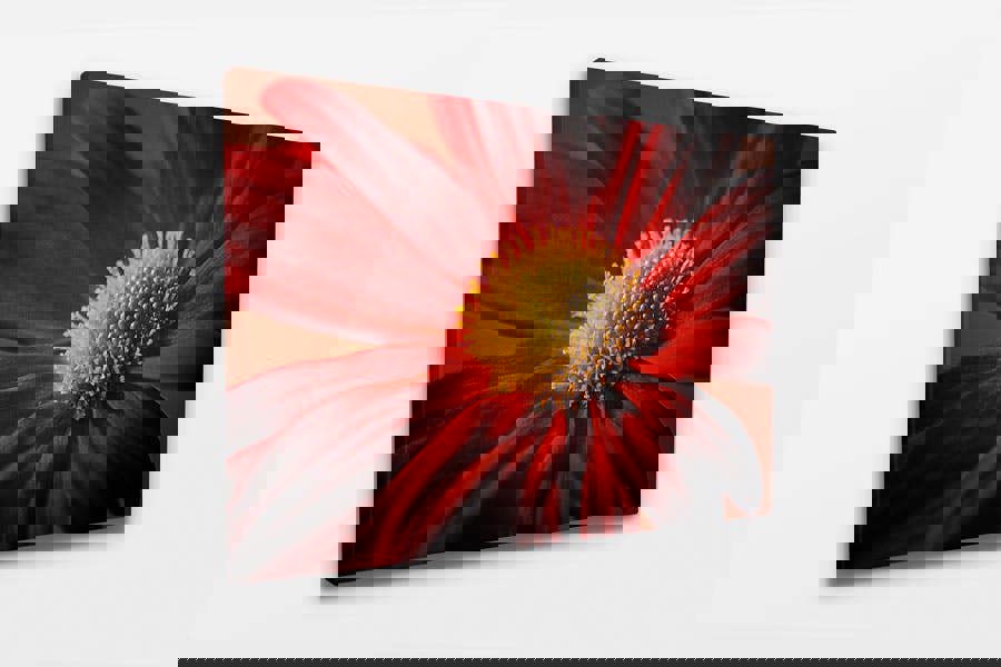 This beautifully illuminated flower print captures the rich crimson petals as they radiate warmth and elegance. The soft glow accentuates the intricate textures and organic curves, drawing attention to the golden centre bursting with fine detail. A captivating floral composition, this floral image exudes both drama and delicacy, making it a stunning addition to any interior.