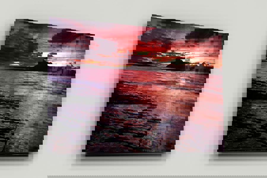 This stunning artwork is available as a high quality photographic wall print, produced using a 12-colour giclée printing process to preserve subtle colour transitions in the sky and fine tonal detail across the rocks and water. You can choose from a framed print, canvas print, or sleek acrylic print, each made to order by a professional print team using premium materials.