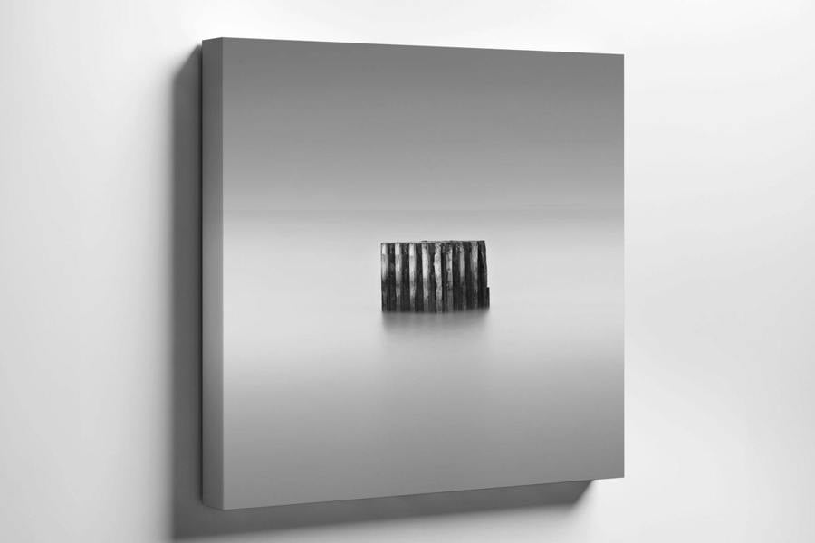 ‘Resolute’ by Doug Chinnery distils the Kent coastline into its quietest form – a single weathered structure rising from a sea of soft, mist-like water. This long-exposure photograph strips the scene back to line, tone and texture, creating a piece of black and white minimalist art that feels both grounding and contemplative. The gentle fade of grey tones and the stillness around the central pillar invite you to pause, breathe and take in the beauty of simplicity. It’s the kind of minimalist artwork that instantly calms a space without demanding attention.