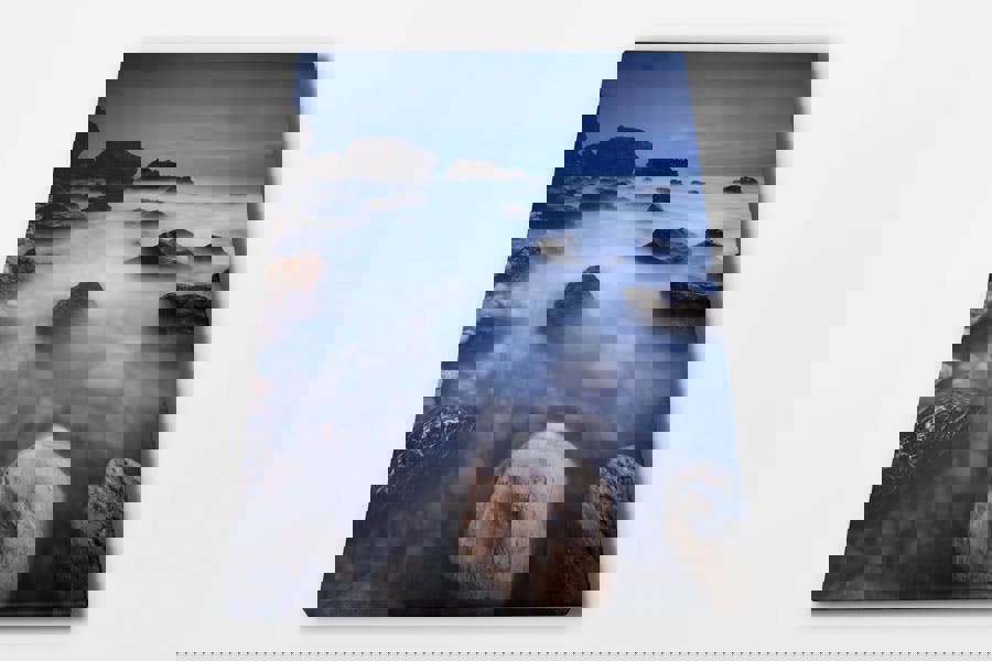 This luxury wall print is ideal for homeowners and interior designers looking to add a tranquil, atmospheric touch to their interiors, and for those who love coastal art, seascape prints and nature inspired art. Perfect for living rooms, bedrooms, or coastal-themed spaces, this piece captures the quiet power and beauty of nature. The cool tones and elegant composition make it a versatile addition to both modern and rustic décor.