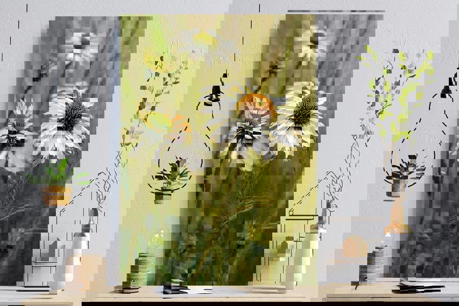 White Coneflower Wall Print – Soft Botanical Art for Tranquil Interiors