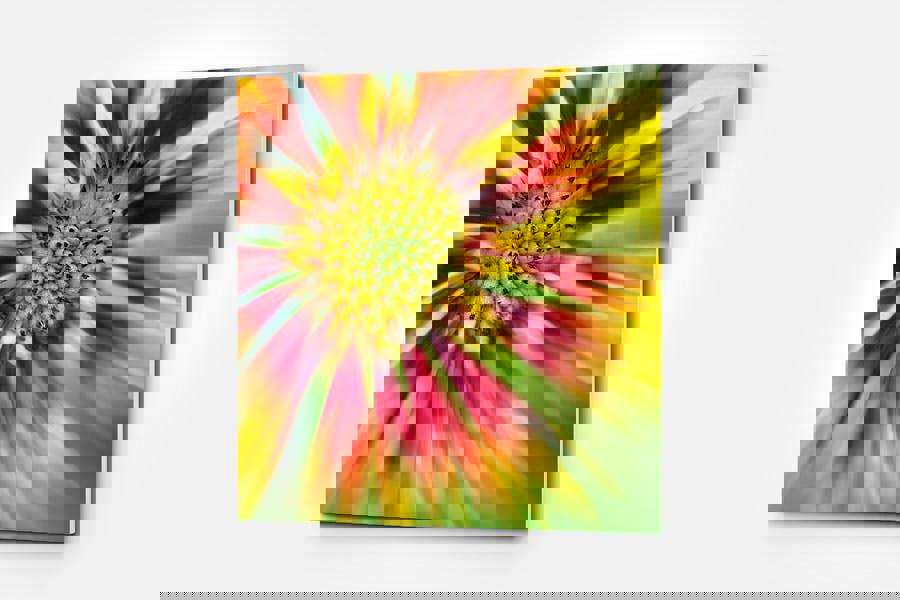 Brighten up your home with the vibrant energy of "Summer Stripes. " This stunning flower art print captures the dynamic beauty of a Gaillardia flower in full bloom, its vivid colours and striking patterns creating a lively and cheerful atmosphere. The bold combination of reds, yellows, and greens draws the eye and adds a splash of summer to any room.