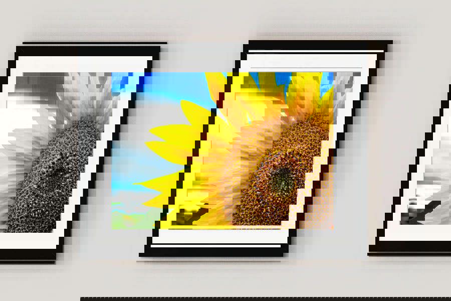 Your wall art is produced to order by our trusted print specialists and offered in three finishes: a mounted framed flower print, a hand-stretched canvas, or a sleek acrylic glass panel. A range of sizes is available; for extra impact, contact us for a larger sunflower wall print.