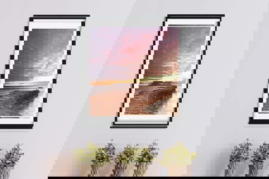 Ideal artwork for hallway galleries, nautical dining areas, book-lined studies or restful bedrooms, the scene’s gentle pinks and aged limestone sit happily alongside neutral palettes, rustic textures and modern coastal décor, lending a whisper of Dorset history indoors.