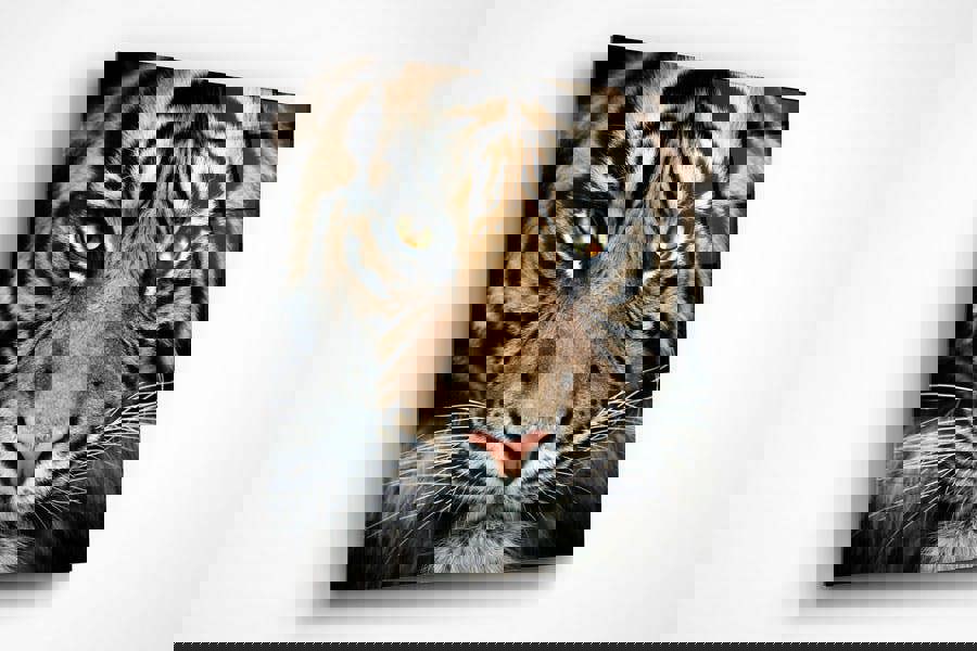 Available as a premium canvas print, a sleek acrylic panel, or a classic framed print, professionally crafted to bring this awe-inspiring tiger portrait to life. Need a different size? Contact us for a bigger tiger!