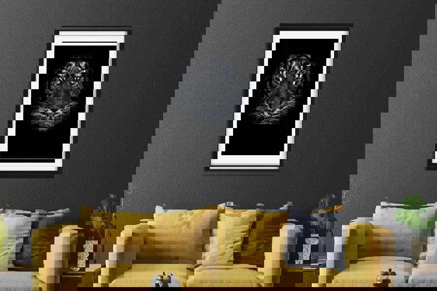 Your wildlife art is produced to order by our specialist partners and offered in three distinct finishes. Select a deep-mounted framed print that sets the image off with museum-grade clarity, a gallery-wrapped canvas print for subtle painterly texture, or an acrylic glass panel that heightens contrast and crispness. A range of sizes is available; for a commanding centrepiece, simply contact us for a larger tiger wall print.