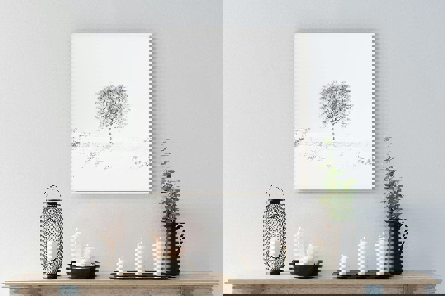 Cool monochrome tones and generous white space suit serene bedrooms, clean modern living rooms and hallway galleries – especially Scandinavian or Japandi interiors. Minimalist design fans, collectors of black and white fine art photography and landscape lovers will appreciate its calming, natural simplicity.