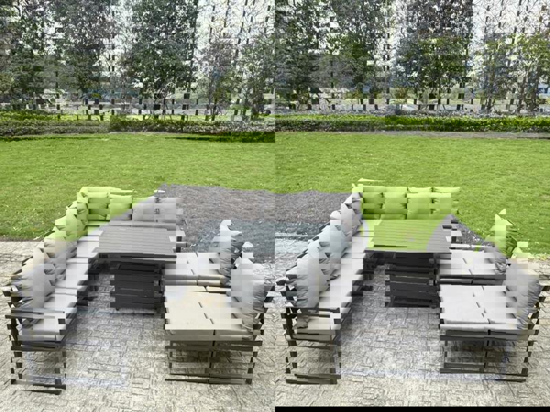 Create a refined setting for outdoor dining and relaxed lounging with this 10-piece aluminium garden furniture set. Designed for patios, gardens and balconies, it pairs a coordinated sofa arrangement with an adjustable dining table, making it easy to switch between casual coffee moments and sit-down meals.