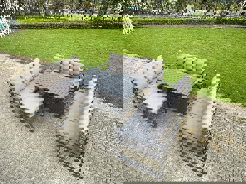 The Fimous U-shaped Garden Furniture Set brings flexible outdoor living to your patio or garden, combining a 3 seater sofa arrangement with an adjustable rising dining table. Designed to switch easily between relaxed coffee moments and comfortable dining, it offers a practical layout for everyday lounging and hosting.