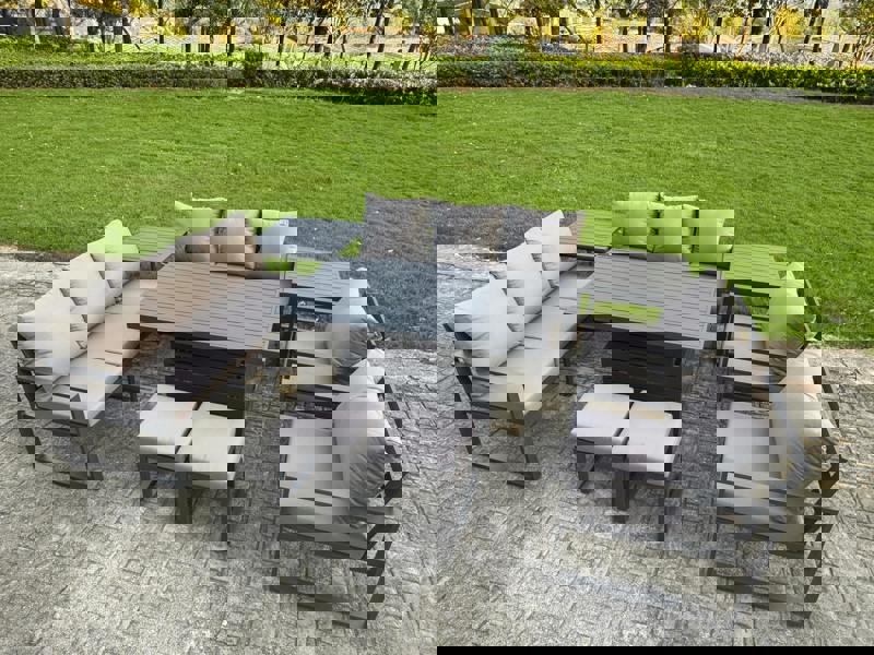 Create a refined outdoor setting with the Fimous 10 Seater Aluminium Outdoor Garden Furniture Set in grey. Designed for gardens and patios, this coordinated set brings together generous seating and a versatile rising table, making it easy to switch between relaxed coffee moments and casual dining.