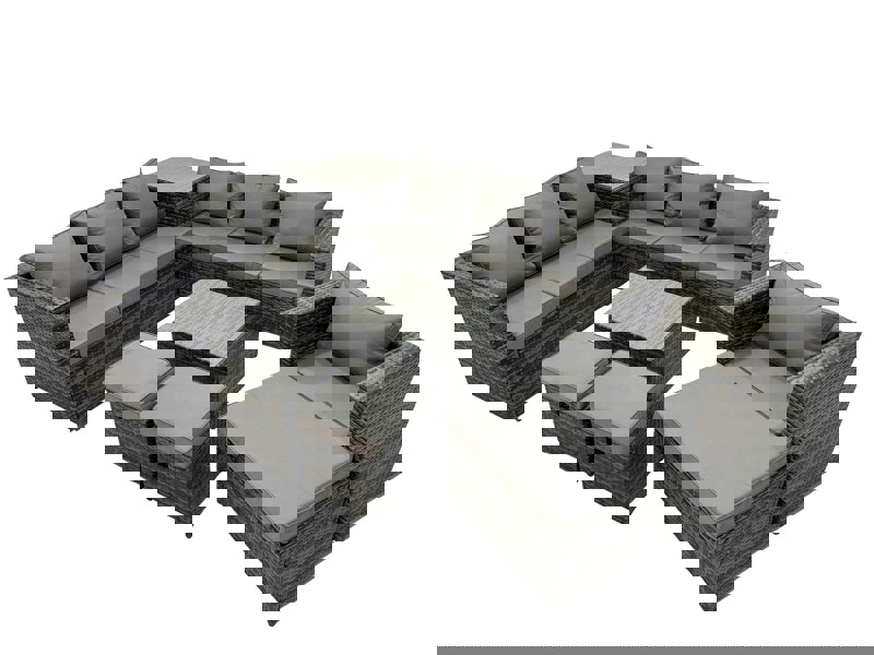 Designed for relaxed outdoor living, this classic corner sofa set seats up to 10 people and is finished in premium dark grey mixed PE rattan. Soft seat cushions and comfortable pillow back cushions create an inviting space for everyday lounging, entertaining and family gatherings.