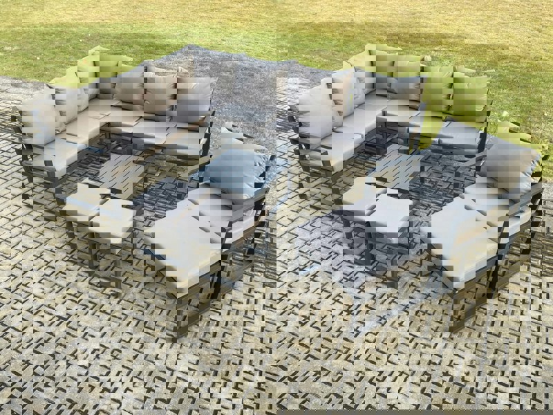 Designed for relaxed outdoor living, this deluxe aluminium sofa set makes a refined addition to a patio or garden. Crafted from alloy aluminium with a powder-coated finish, it is made for sturdiness and structural durability, while the dark grey colourway creates a cohesive look across the set.