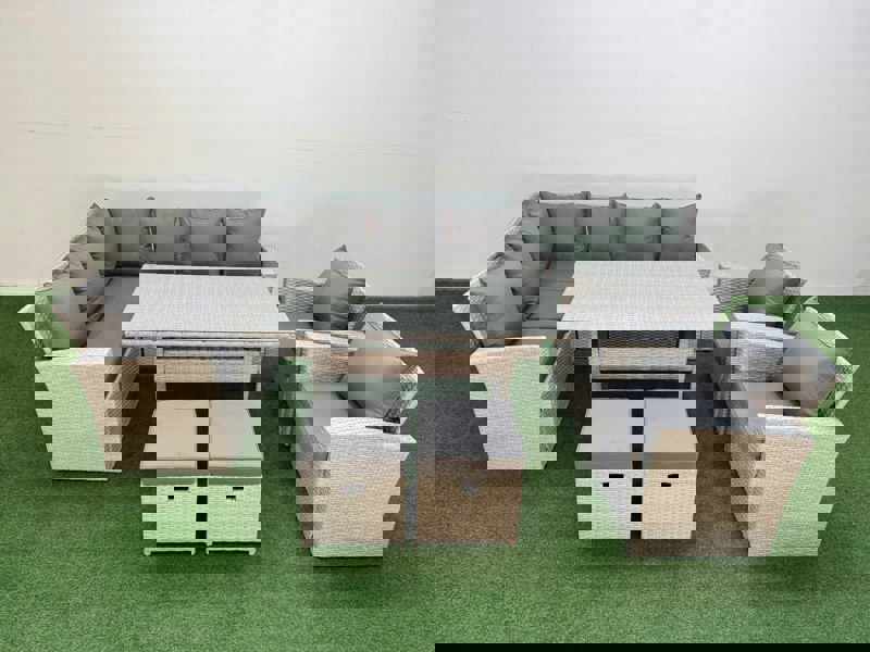 Create a refined outdoor seating and dining area with this deluxe high back rattan corner sofa set, designed for relaxed gatherings on the patio or in the garden. Made from high quality PE rattan with a durable galvanised steel construction, it offers a sturdy setup for everyday outdoor living.