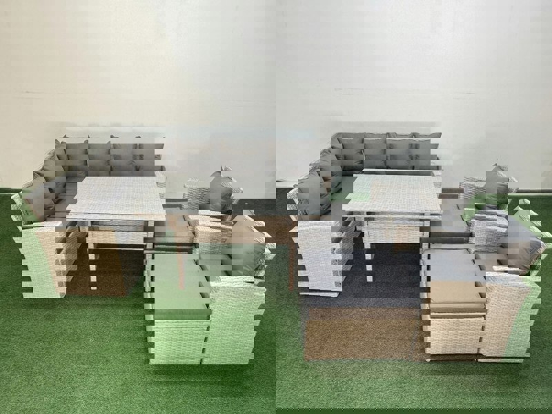 Create a refined outdoor setting with this deluxe high back rattan corner sofa set, designed for relaxed dining and sociable moments on the patio or in the garden. Crafted from high quality PE rattan with a durable galvanised steel construction, it offers a sturdy, long-lasting place to gather with family and friends.