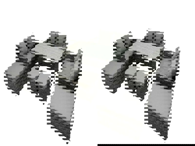 Create a refined outdoor dining and lounging space with this PE rattan furniture set, designed for patios and gardens. Made with high quality PE rattan and a durable galvanised steel construction, it is built for sturdiness and long-lasting use, and can be left outdoors all year round.