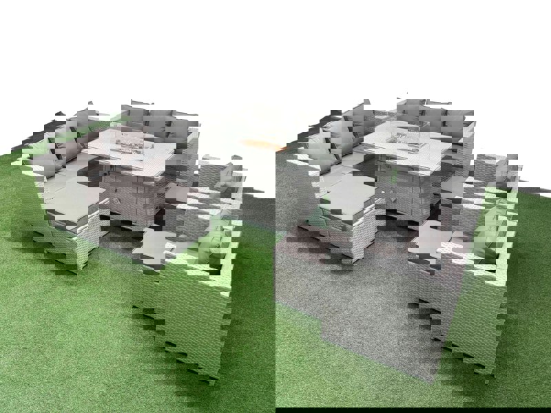 Create a refined outdoor seating area with the Fimous 11 Seat PE Rattan Lounge Sofa Set, designed for relaxed lounging and sociable dining in the garden. This set pairs a fire pit dining table with generous seating, bringing comfort and practicality to patios and outdoor entertaining spaces.