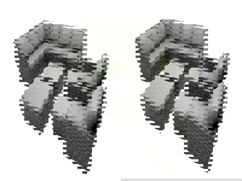 Finished in dark grey mixed rattan with dark grey fabric, the set is made with comfort in mind, including an ergonomic high back and a reclining design. It is supplied flat packed and is designed to be easy to assemble, with selected pieces supplied fully assembled or semi-assembled as stated.