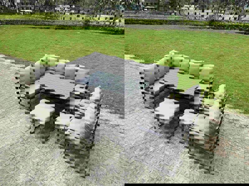 Designed for relaxed outdoor living, this aluminium adjustable rising sofa dining set brings flexible seating and dining to your patio or garden. The adjustable table transitions smoothly between coffee and dining height, making it easy to switch from casual drinks to meals without changing your layout.