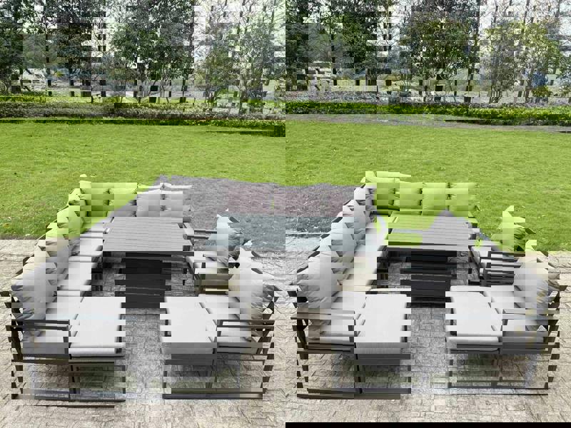 Create a refined outdoor setting for relaxed coffee moments and effortless dining with this 11 seater sofa dining set. Designed for patios, gardens and balconies, it pairs a versatile rising dining table with a configurable mix of sofas, chairs and footstools, so you can adapt the layout to suit the occasion.