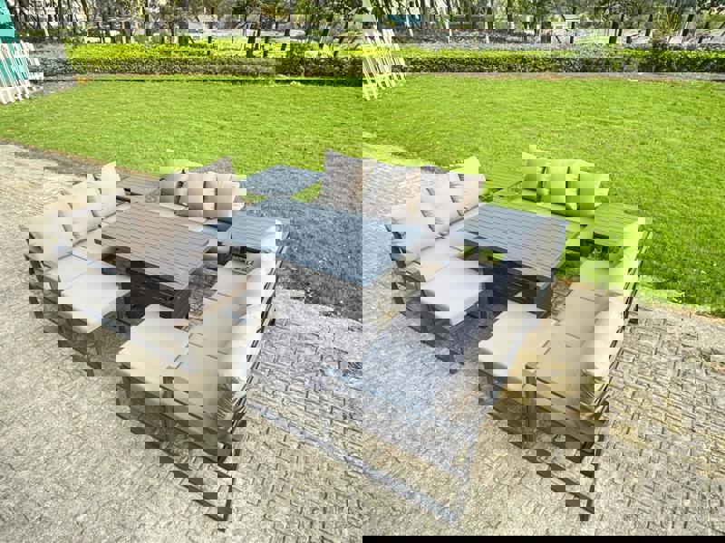 Create a flexible outdoor setting with this deluxe aluminium adjustable rising sofa dining set, designed for relaxed coffee moments and effortless dining in the garden or on the patio. Crafted from high quality alloy aluminium with a dark grey powder coating, it offers a sturdy, rust-resistant frame with a clean, modern look.