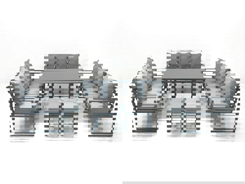 Designed for relaxed outdoor living, this deluxe aluminium adjustable rising sofa dining set brings flexible seating and dining to your patio or garden. Finished in dark grey powder coating with matching dark grey fabric, it offers a coordinated look for everyday lounging, casual meals, and entertaining.