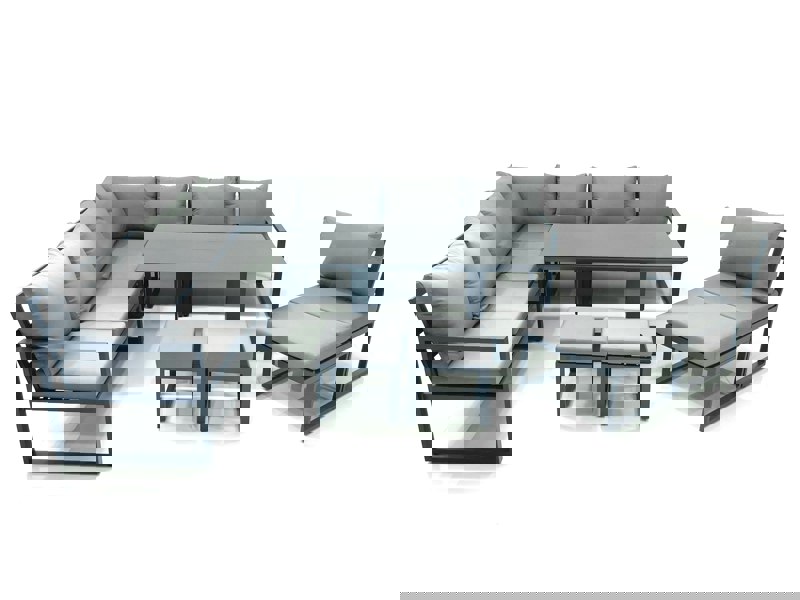 Create a refined outdoor living space with the Fimous 11 Seater Outdoor Aluminium Garden Furniture Set, designed for relaxed lounging and flexible dining on the patio or in the garden. This adjustable rising sofa dining set combines a powder-coated alloy aluminium frame with dark grey fabric for a coordinated, contemporary look.