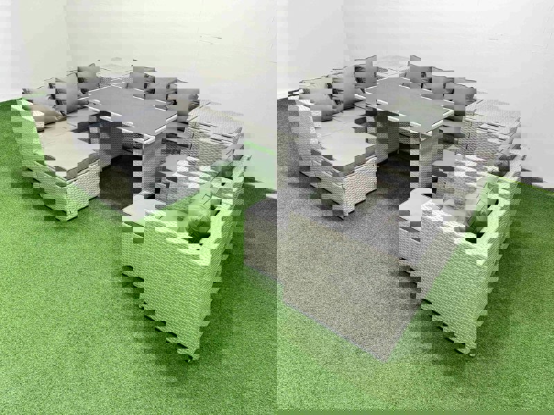 Create a refined outdoor dining and lounging space with this 11 seater PE rattan furniture set, designed for flexible garden living. With a modular layout, it’s easy to arrange for relaxed coffee moments or open-air dining, while the light grey mixed rattan and dark grey fabric bring a contemporary finish to patios and terraces.