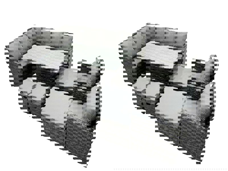 Designed for outdoor living, this 12 seat rattan patio set brings flexible comfort to your garden or backyard. Built around a rust-proof steel frame with all-weather PE wicker, it is made to handle sun, rain and wind while keeping day-to-day upkeep simple.