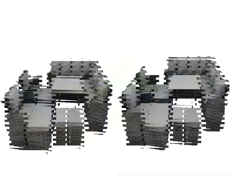 Designed for both indoor and outdoor use, this patio corner sofa set brings a refined look to patios, balconies and relaxed entertaining spaces. With a blend of country chic and modern minimalism, it adds an elegant finishing touch while creating a comfortable setting for dining and lounging.
