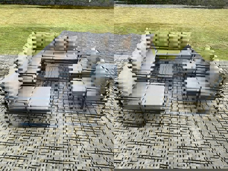 Create a refined outdoor seating area with this 12 seater lounge corner sofa set, designed for patios and gardens. Made from alloy aluminium with a powder-coated finish, it is built for sturdiness and structural durability, while helping to prevent rust.