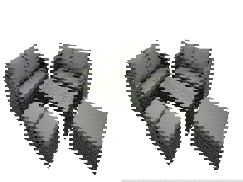 Made with high quality PE rattan and a durable galvanised steel construction, the set is built for everyday use. The ergonomic high back and reclining design enhance comfort, while the oblong coffee table is finished with 5mm thick transparent tempered glass secured with suckers to help prevent sliding.