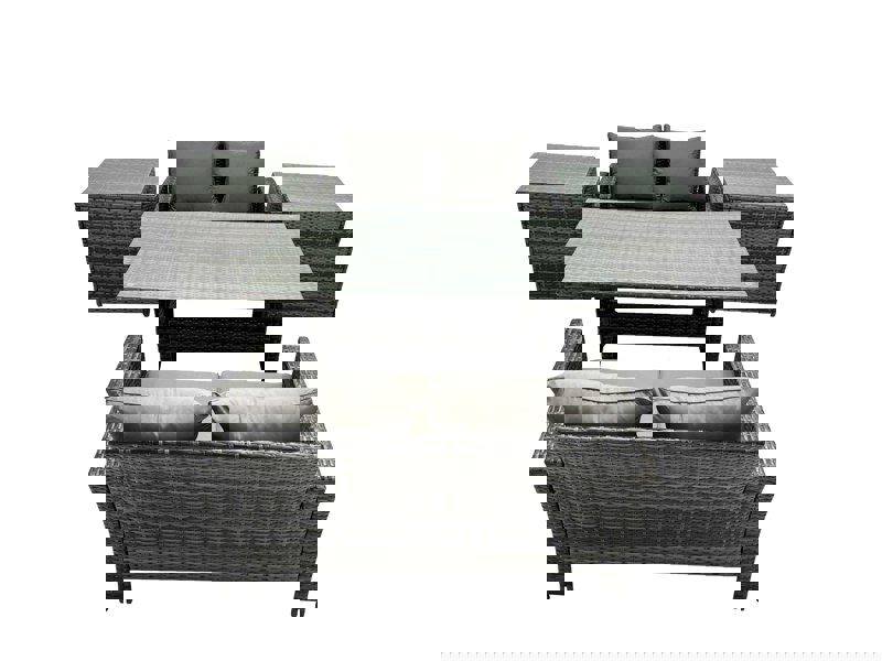 Finished in dark grey mixed rattan with dark grey fabric, the set is supplied flat packed for easy assembly. Thoughtful details such as removable cushion covers and a tempered glass tabletop help make everyday use and repositioning simple.