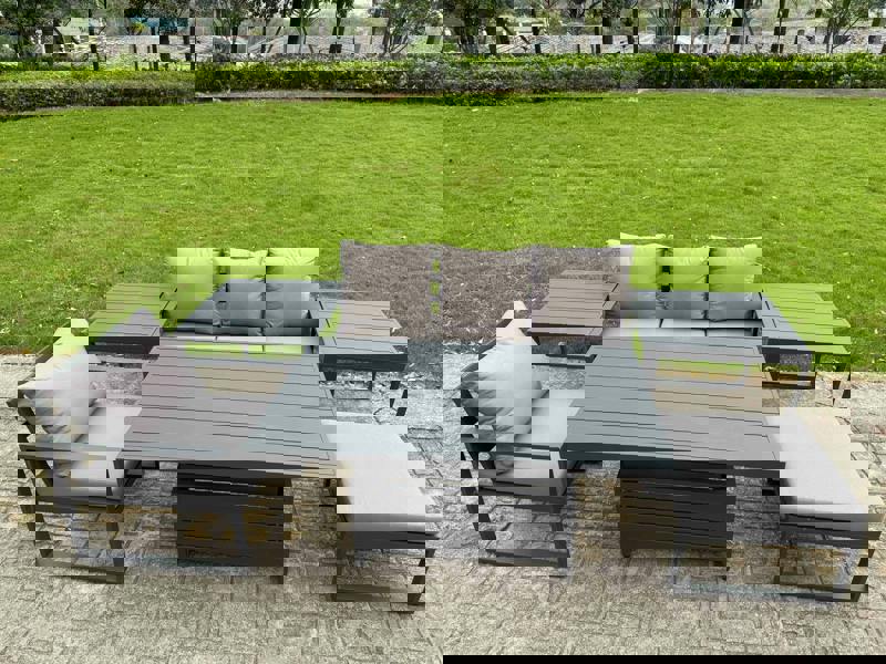 Crafted from rust-proof alloy aluminium with a durable dark grey powder-coated finish, the frame is built for lasting outdoor use. Thick seat cushions and soft pillow back cushions add comfort, with removable covers to make day-to-day upkeep simpler.