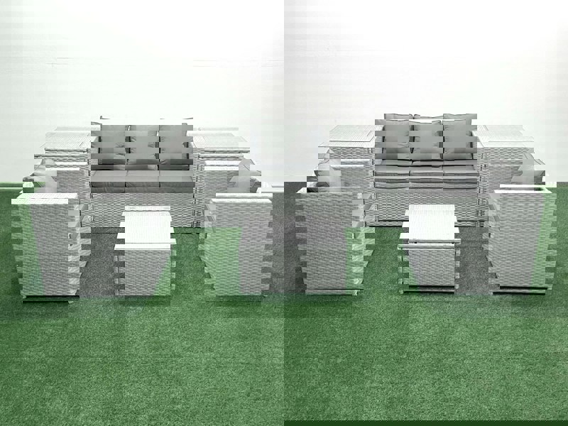 Finished in light grey mixed rattan with dark grey fabric, the set pairs a clean, contemporary look with practical details for day-to-day use. Removable cushion covers support easy cleaning, while the flat-packed design allows for self-assembly at home.