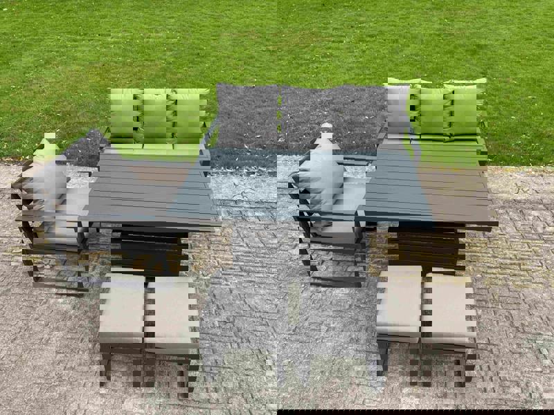 Upgrade your patio, garden, or balcony with this versatile sofa dining set, designed to switch effortlessly between relaxed lounging and dining. Crafted from rust-proof alloy aluminium with a durable dark grey powder-coated finish, it offers lasting performance for outdoor living.